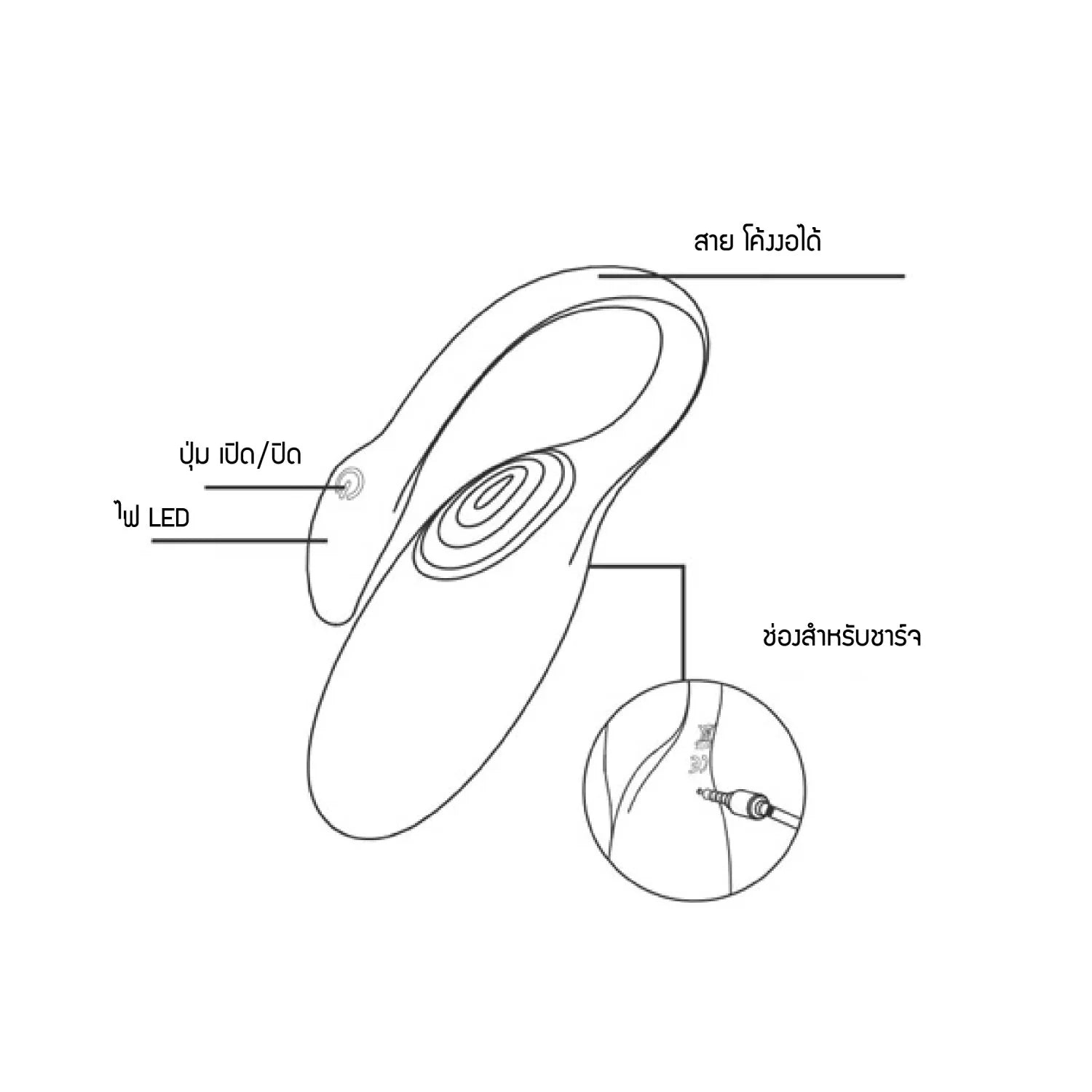การเปิด/ปิดใช้งาน กดปุ่ม1 ครั้ง เพื่อเปิด/กดค้างไว่ 3 วินาที ปิดการใช้งาน กดอีกครั้งเพื่อเปลี่ยนระดับแรงสั่น