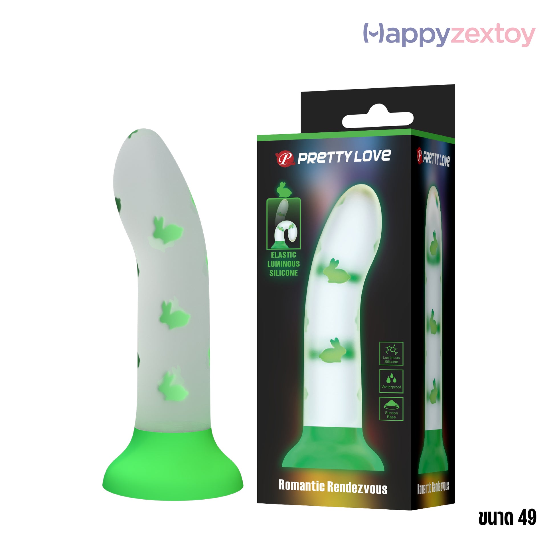 ดิลโด้เรืองแสง มาพร้อมแกนด้านในลายกระต่ายเล็ก ๆ หลายชิ้นที่สามารถดูดซับแสงไว้ และเปล่งแสงในที่มืด เพิ่มความสนุกและความตื่นเต้นยิ่งขึ้น ✨🌙 (ขนาดประมาณ 49)