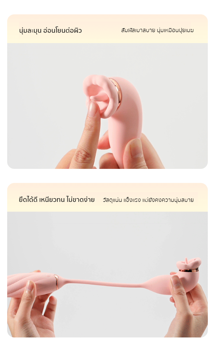 ตัวลิ้นนุ่มๆ ช่วยกระตุ้นจุด C ด้านนอก ส่วนไข่สั่นด้านในก็เข้าถึงจุด G แบบพอดีตัว ฟินเป็นจังหวะต่อเนื่อง 💓