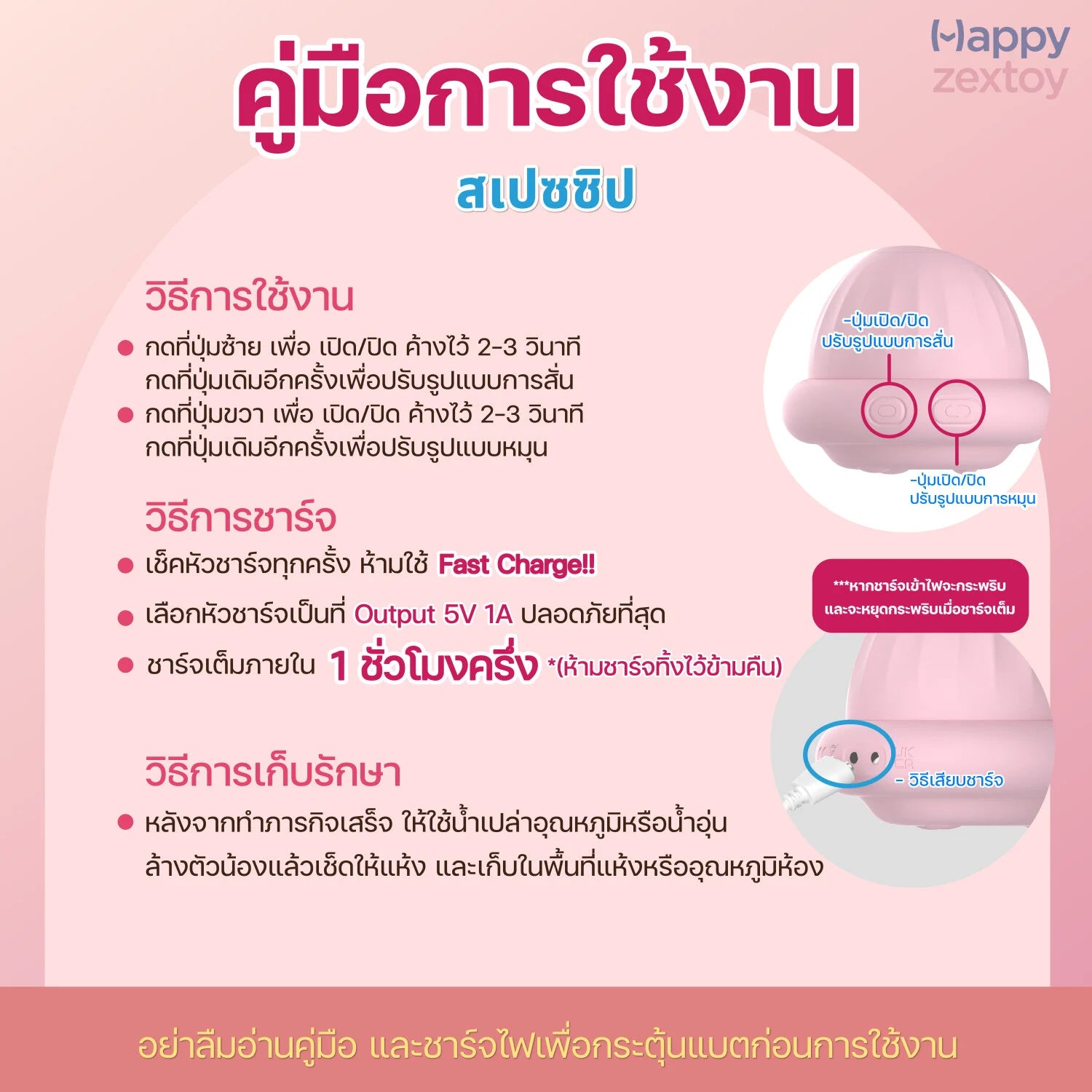 คุณสมบัติ : ปรับสั่นได้ 10 รูปแบบ ปรับหมุนนวดได้ 3 รูปแบบ