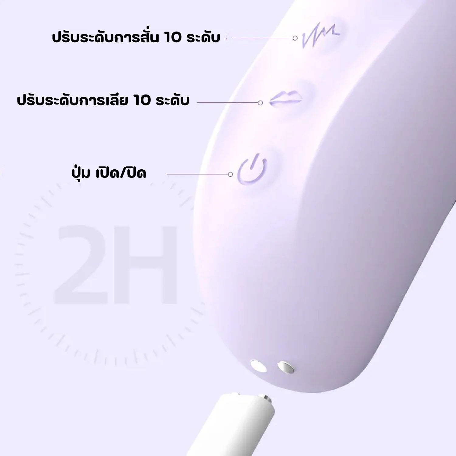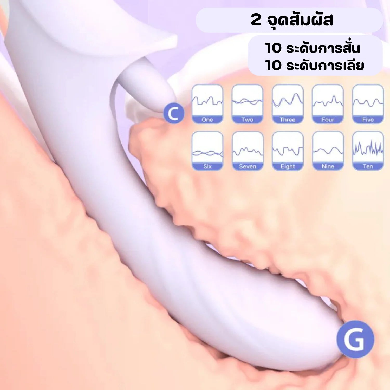 คุณสมบัติ : การสั่น 10 ระดับ การเลีย 10 ระดับ กันน้ำ IPX7